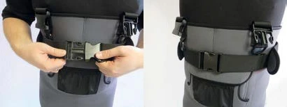 Het zeer prettige aan dit model is dat dit waadpak ook als taille-model kan worden gebruikt. De schouderbanden kunnen worden omgedraaid en doen dan dienst als buikriem. Dit kan uitkomst bieden voor mensen, die na lange tijd waden, een trekkend gevoel ervaren in schouders of onderrug als gevolg van de schouderbanden op een waadpak. De afwisseling naar taille-model is dan zeer prettig.