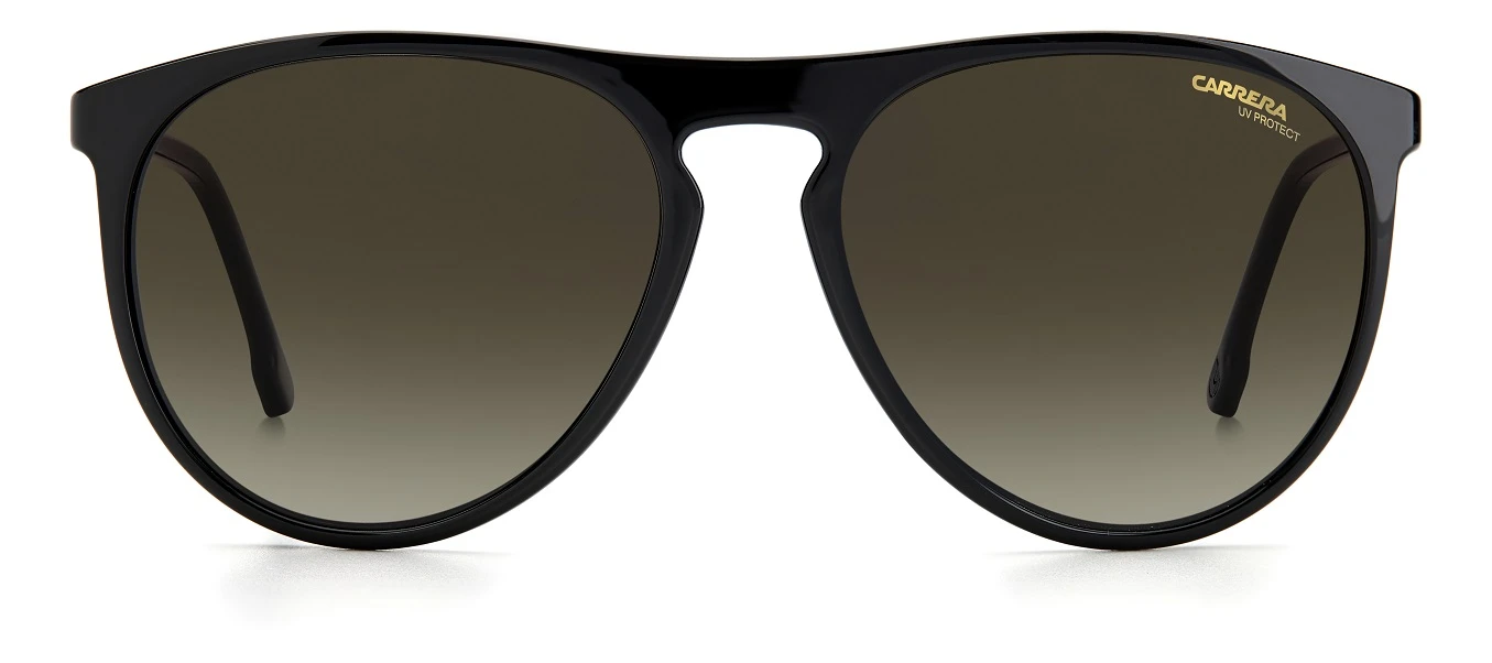 Tijdloze elipsvormige zonnebril van Carrera. Het zwarte montuur staat perfect bij de bruine glazen met hun gradient effect. Dit betekent dat de glazen overgaan van licht naar donker. De glazen bieden je een UV400 bescherming. De brilveren (flex-scharnier) zorgen dat deze bril altijd goed past en ideaal is voor al jouw outdoor activiteiten!