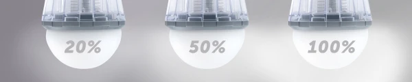 Drie krachtige LED’s zorgen voor helder, neutraal licht met een kleurtemperatuur van ca. 6000-6500K. De helderheid van de lantaarn kan in 3 niveaus worden ingesteld en eenvoudig worden aangepast aan de gewenste lichtstemming. De afneembare rubberen koepel zorgt voor verblindingsvrij en zacht licht.