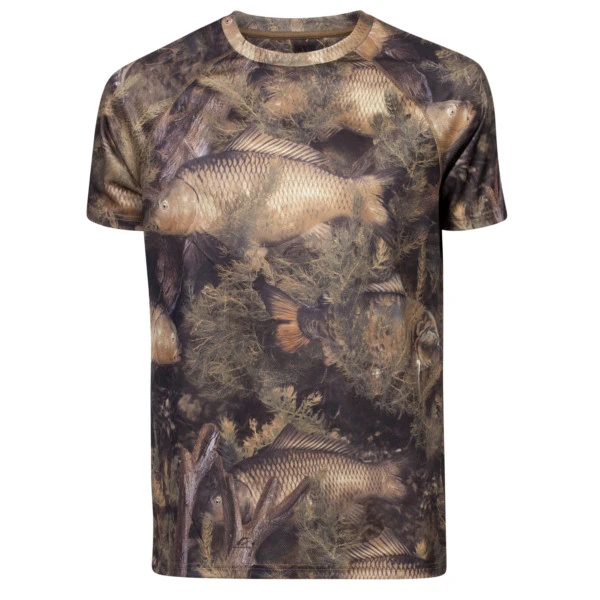 Het Fishouflage T-Shirt is voorzien van een supervet karper camou design! Nu combineer je camou met je favoriete vissoort. Het shirt is gemaakt van 100% polyester en is sneldrogend. De stof heeft een UPF40+ UV bescherming die je lichaam beschermt tegen de schadelijke invloeden van de zon.