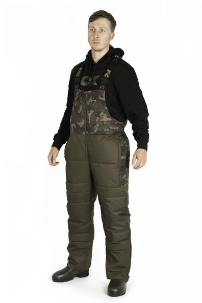 Fox Camo Khaki RS Salopettes is een goede stevige broek waarbij je niet bang hoeft te zijn dat deze afzakt. Hij heeft twee verstelbare elastische schouderriemen die je onder je jas draagt. De broek is gemaakt met Quilted Salopettes. Dit in combinatie met donsachtige polyester thermische isolatie maakt dat de broek perfect geschikt is voor de winter. De kniestukken zijn versterkt met gevoerde kniepanelen zodat je geen natte plekken of slijtplekken krijgt als je op je knieën zit. De broekspijpen hebben aan de onderkant ritsen zodat wat voor schoeisel je ook aan je voeten draagt, de broek er altijd overheen kan. Hij is ontworpen om perfect aan te sluiten op de Fox Camo/Khaki RS Jacket. Met de Fox Camo Khaki RS Salopettes zal je het niet snel meer koud krijgen in de winter!