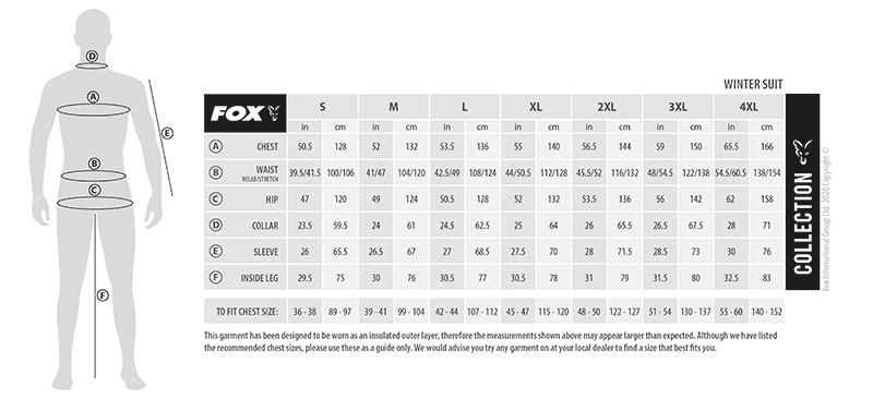 Het Fox Carp Winter Suit is een tweedelig pak met thermische voering dat je warm houdt tijdens koude omstandigheden. Jas en broek zijn extreem lichtgewicht en uitzonderlijk warm, overal dubbel gestikt en hebben versterkte dubbele voering op de stresspunten zoals elleboog, zitvlak en knieën. De jas heeft veel zakken, om je handen warm te houden en om waardevolle spullen zoals telefoon, portemonnee en sleutels in de buurt te houden.