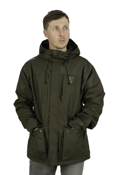 De Fox Collection HD Lined Jacket is een reeks jassen die geschikt zijn voor alle weersomstandigheden. De jas heeft een volledig instelbare capuchon met een peak, drie panelen en verstelbare koorden zodat je zelf in heftige regen niets in je gezicht krijgt. De plekken waar de meeste beweging plaatsvind, denk hierbij aan de schouders, achterzijde en de polsen, zijn extra versterkt zodat de jas lang meegaat. Op de borst zitten twee externe zakken met waterdichte ritsen zodat je jouw telefoon altijd droog en veilig kan bewaren. Aan de voorkant zitten twee grote zakken die te sluiten zijn met drukknopen, daarnaast is deze jas ook nog voorzien van twee handzakken die tevens met waterdichte ritsen zijn uitgevoerd. Tot slot heeft de binnenkant van de jas een veiligheidszak met een rits voor belangrijke spullen zoals portemonnee of autosleutels en is hij gevoerd met “micro fleece”. Dus ben je op zoek naar een nieuwe jas voor jouw visavonturen, dan is de Fox Collection HD Lined Jacket voor jou!
