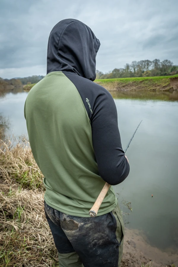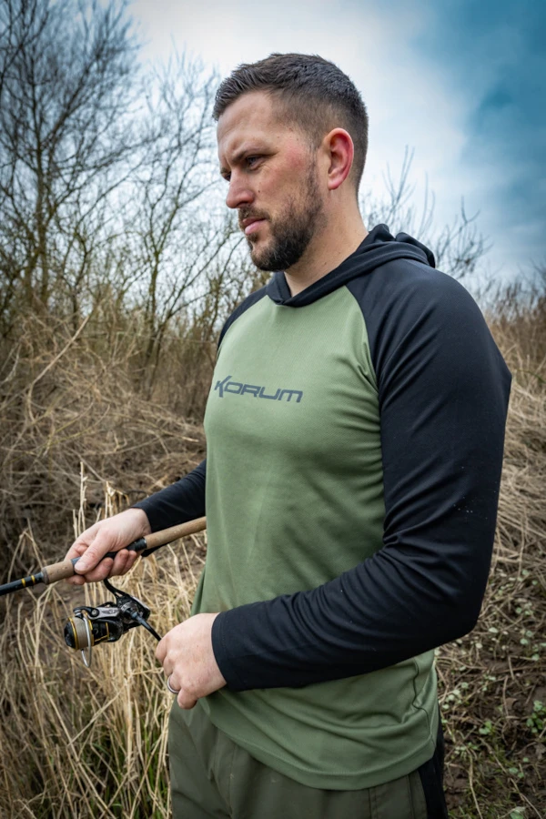 Het Korum Dri-Active Hooded Longsleeve T-shirt is uitgevoerd met het nieuwe Dri-Active materiaal dat ontworpen is om vocht weg te houden van je huid, waardoor je koeler blijft in de zomer en warmer in de winter. Het shirt kan gebruikt worden als buitenste laag in de warmere maanden of als een basislaag wanneer het koud is. Het flexibele en zachte materiaal maakt het zeer comfortabel. Het t-shirt is voor extra comfort uitgevoerd met een muts. Perfect voor tijdens het vissen maar ook voor andere activiteiten. Verkrijgbaar in verschillende maten.