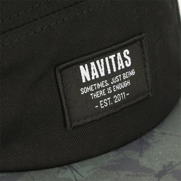 De Navitas Identity Camo 5 Panel is een fraaie 5-panel cap, zwart van kleur met de het iconische Navitas camouflagepatroon op de klep. One-size-fits-all.