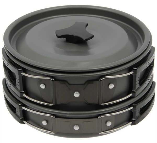 Deze NGT Aluminium ketel- en pannenset is perfect te gebruiken voor de visser die lang aan de waterkant zit en daarbij ook zelf eten wil maken. De ketel en pannen passen precies in elkaar zodat het geheel super compact blijft. De handgrepen van de pannen zijn inklapbaar.