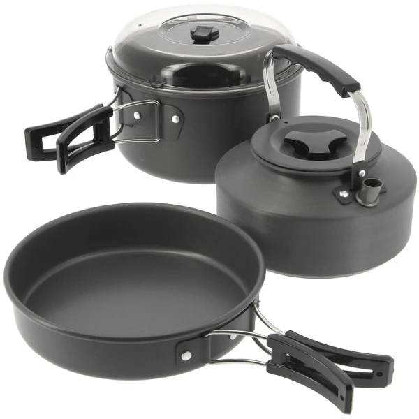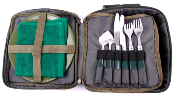 Met deze complete Outdoor Cooking Set van NGT kun je koken of koffie zetten aan de waterkant! Deze deal bestaat uit een ketel- en pannenset met inklapbare handgrepen, waarvan de ketel en pannen precies in elkaar passen zodat het geheel super compact blijft. De bestekset zit in een luxe carry case die gemakkelijk in elke carryall past. De set bestaat uit 2 groene borden, 2 vorken, 2 messen, 2 lepels, 2 thermo mokken, 2 potjes voor kruiden en een groen handdoekje.