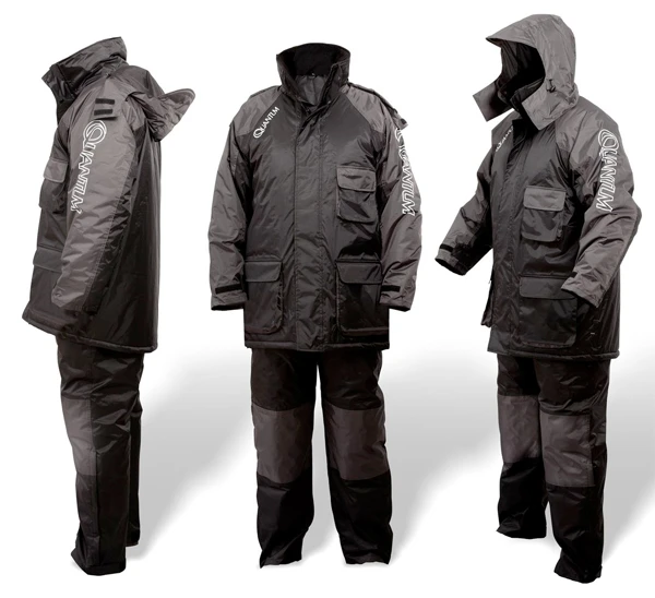 Dit tweedelige Quantum Winter Suit is heerlijk warm en beschermt je volledig tegen wind en regen! De jas heeft een hoog gesneden en met zacht materiaal gevoerde kraag als beste bescherming tegen ijzige wind. Perfecte pasvorm en draaggemak van de broek, die ervoor zorgen dat het pak altijd prettig voelt en je voldoende bewegingsvrijheid hebt dankzij de ruime snit. Extra kniestukken, kwaliteitsritsen en gevoerde broekzakken om je handen te kunnen warmen tijdens het vissen. De jas heeft een gevoerde en afneembare capuchon met regen schild, praktische binnen- en buitenzakken en zachte manchetten in de mouwen. Laat kou, regen en wind maar komen!