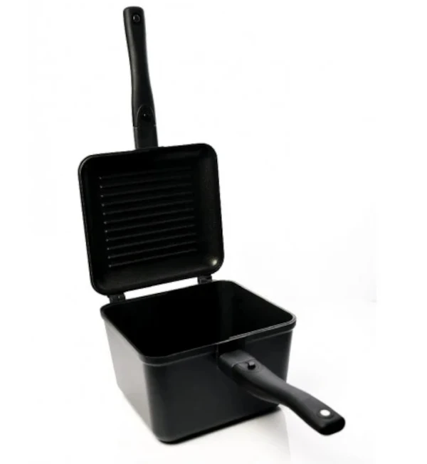De Ridgemonkey Connect Multi-Purpose Mini Pan & Griddle Set is een handige set van kookgerei, bestaande uit een steelpan en een grillpan. Het geheel heeft afmetingen van 19 × 15,5 × 10cm. Hierdoor is het geheel zeer compact. Verder zorgt het gegoten aluminium ervoor dat het ook zeer licht in gewicht is. De pannen beschikken over een kwaliteits anti-aanbaklaag, gemaakt van fluorpolymeer. Hierdoor zal eten niet snel aanbakken. De Grillpan beschikt over ribbels aan de onderzijde zodat warmte gelijkmatig over de pan wordt verdeeld. Beide pannen zijn geschikt voor vrijwel ieder kookstel behalve inductie kookstellen. Verder zijn de stelen van de pannen te verwijderen d.m.v. een magnetisch systeem.