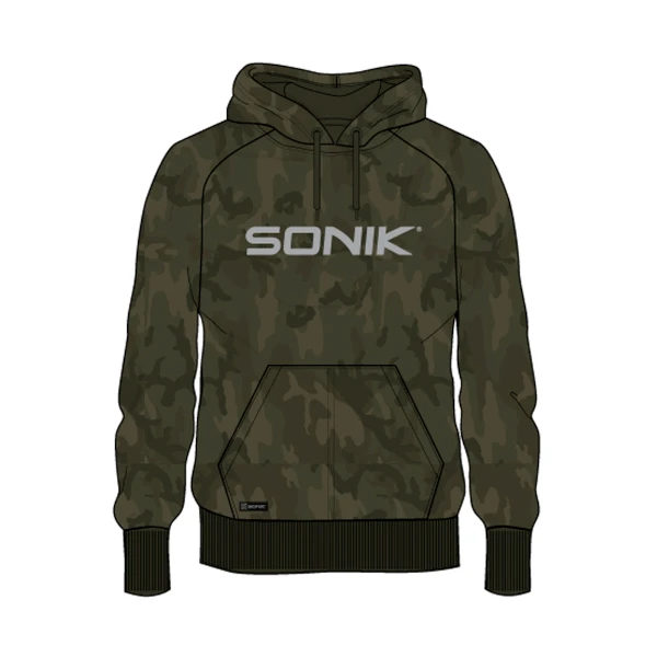 De nieuwe Camo Hoody van Sonik is een zeer comfortabele, stijlvolle hoodie van goede kwaliteit. Deze hoodie is voorzien van een dubbellaagse capuchon voor extra comfort. De hoodie zelf is gemaakt van driedraads fleece, 300 GSM materiaal bestaande uit 80% katoen en 20% polyester. Deze combinatie van materialen zorgt voor een goede warmte en comfort. Andere kenmerken zijn de elastische manchetten, trekkoorden bij de capuchon en handige voorzakken. Afgewerkt in een stijlvolle camo print met een Sonik logo op zowel de achter- en voorkant.