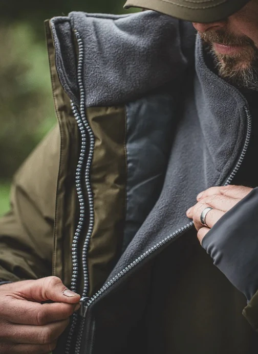 Het nu volledig kakikleurige pak biedt nog steeds zijn unieke driedelige lagensysteem met een geïsoleerd jack, een interactieve fleecevoering met rits en een volledige bib-and-brace-bodem. Dit veelzijdige zwaargewicht pak kan in de koudste maanden volledig worden gebruikt en de fleece-laag kan worden verwijderd voor warmere dagen, voor meer comfort op de oever. De stijl en pasvorm van de kledingstukken bieden optimale bewegingsvrijheid op de oever. Alle zakken zijn met fleece gevoerd voor extra warmte, met ritssluiting. Een 3-delig pak voor ultieme prestaties en veelzijdigheid!
