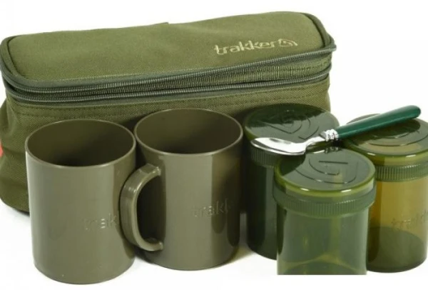 De Trakker NXG Brew Kit is een speciale kit voor het maken en bewaren van koffie en/of thee. De kit wordt geleverd inclusief twee plastic mokken, één theelepel en 3 afsluitbare potjes voor koffie, thee, suiker, etc. Verder is de opbergtas gemaakt van polyester en bedekt met folie wat voor uitstekende thermische eigenschappen zorgt. De tas heeft afmetingen van 26 × 12 × 14cm waardoor alles prima in het tasje past en waardoor hij mooi compact blijft. Voor de visser die graag koffie en/of thee drinkt langs de waterkant is dit de ultieme oplossing.