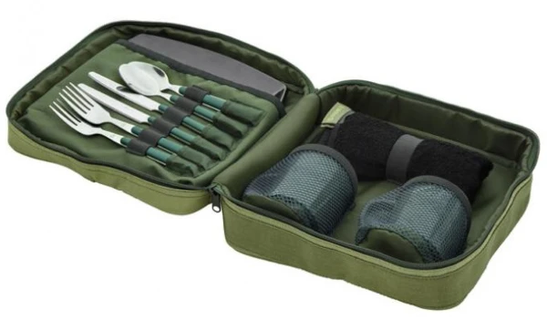 De Trakker NXG Deluxe Food Set is een zeer handige en degelijke eetset voor langs de waterkant. De set bestaat uit 2 messen, 2 vorken, 2 lepels, 2 borden, 2 drinkbekers en 1 theedoek. Hierdoor is elke maaltijd mogelijk tijdens het vissen. De draagtas is netjes geordend en gemaakt van polyester, waardoor hij zeer robuust is en een lange levensduur kent. Verder bevat de draagtas een EVA handvat voor gemakkelijk vervoer.