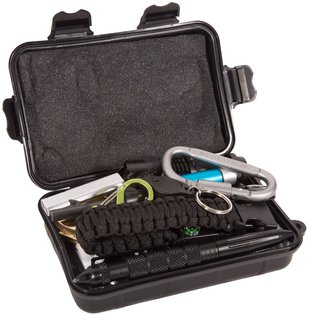 Deze Survivalkit van Ultimate bevat alle essentiële zaken die je nodig hebt tijdens een noodsituatie en is onmisbaar voor iedereen die buiten de gebaande paden gaat kamperen, wandelen of vissen. In de lichtgewicht en compacte kit zitten tools als een zaklamp met stroboscoopfunctie, een paracord armband met 3,5 meter gevlochten nylon lijn met een trekkracht tot 100kg, een multifunctioneel zakmes, een emergency-tool met vuurmaker en een heavy duty pen met tungsten kop waarmee je een autoruit kunt inslaan. Maar ook een warmtedeken die 90% van je lichaamswarmte vasthoudt, een 2-tonig fluitje met een volume van 100 decibel, een kompas en nog veel meer. Een absolute must bij avontuurlijke outdoor activiteiten!